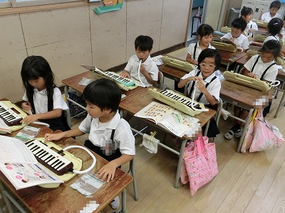 1組・2組とも、鍵盤ハーモニカの学習が始まりました。