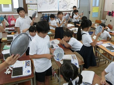 4年生では、夜空の星についての学習をしており、「星座早見盤」の使い方について学習していました。