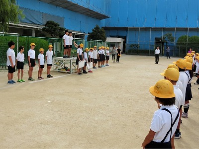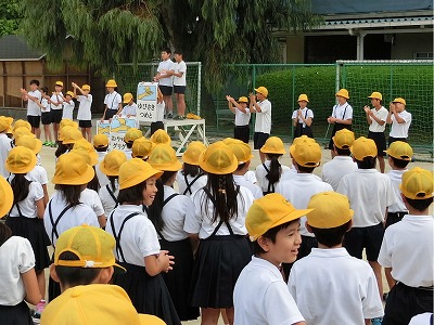 今朝の児童朝会では、保健委員さんから「正しい手の洗い方」について、「きらきらぼし」のメロディーに合わせた替え歌を、振付もしながら発表がありました。