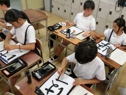 4年生 筆を使った「むすび」は難しいね (9月11日)