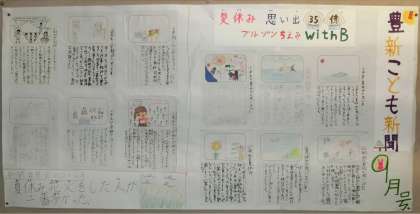 新聞委員会さん作成の「豊新こども新聞9月号」が完成し、2号階段1階の掲示板に貼り出されています。