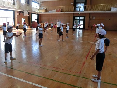 講堂でのボール運動学習です。