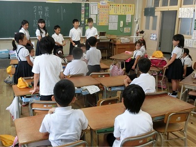 今朝も先週に引き続き、児童集会ではなく、たてわり班で豊新フェスティバルの取り組みを行いました。
