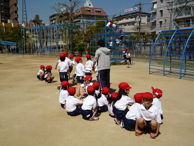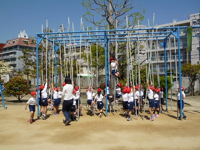 クラス毎に順に種目(登り棒・ジャングルジム・うんてい)を変えながら、得意な子も、不得意な子も、一生懸命に取り組んでいました。