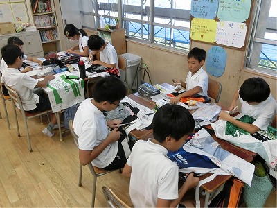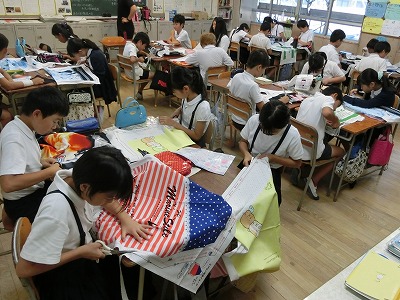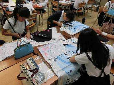 6年生では修学旅行に持って行き、ウインナー作りの際に使用する「エプロン」の制作に取り掛かっています。