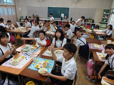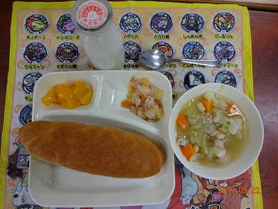 じゃがいもとトマトのチーズ焼きは、ベーコン、じゃがいもを、塩、こしょうで下味をつけます。そして、トマトを入れチーズをのせ、焼き物機で焼いて作ります。ピザのような味で子どもたちは、好んで食べていました。