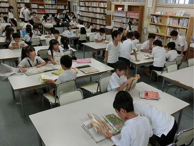 朝からの雨、低学年さんの体育の都合がうまくいったのか、2時間目の授業の終了のチャイムが鳴ってから、図書室にどんどんと子どもたちが集まってきました。