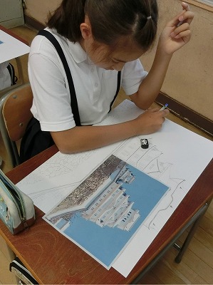 お城や神社仏閣など、自分のお気に入りを1つ選び、それを詳細まで再現し絵に描いています。