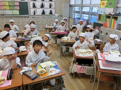 昨日(27日)の給食風景です。作業してアップできていると思ったのですがミスでした。遅ればせながら、アップさせていただきます。申し訳ありませんでした。