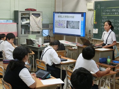 授業の後半では、各人物から1人ずつ、代表の児童が前に出てプレゼン発表です。選ぶ資料も精選されており、説明もわかりやすく、簡潔にまとめられていました。すごいです。