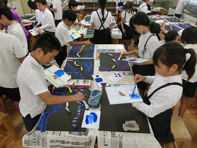 国語では宮沢賢治さんの「注文の多い料理店」を読み進めていますが、同じ作者の「銀河鉄道の夜」の世界をモチーフし、星がきらめく宇宙を走る銀河鉄道を描くようです。
