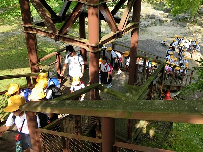 木の高さにある遊歩道に登って、高さにおびえながらも、恐る恐る、森の間を歩きました。