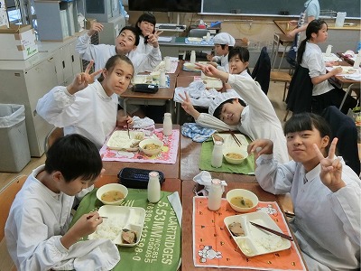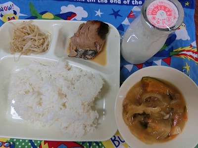 普段、あまり口にしない食材でしたが、大きな切り身がしょうが醤油で煮込まれていて、骨もなく、とても食べやすかったです。でも、低学年さんの一部には、しょうがの辛さに顔をゆがめている子もいました。
