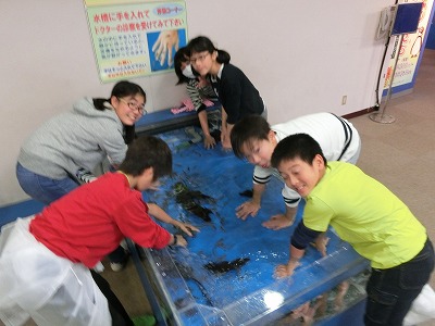 ドクターフィッシュの水槽では、手を入れると魚が集まってきて、手をお掃除してくれました。
