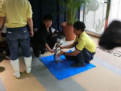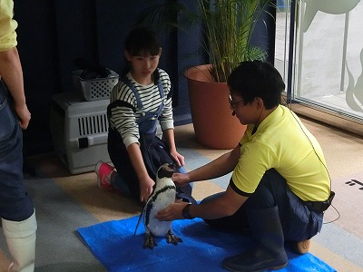 まずは、ペンギンタッチです。おとなしくしているペンギンの背中を一人ずつ優しくタッチです。ペンギンを前に、笑顔がこぼれます。