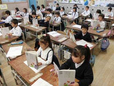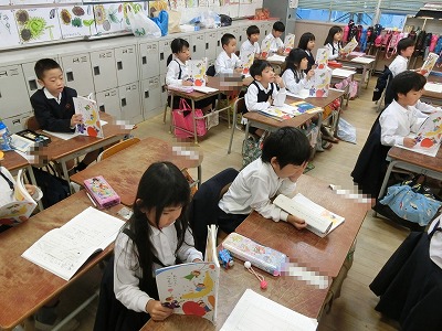 今までは「大きな声で」「ゆっくりと」などが目標でしたが、今日の先生のお話では、「大きすぎる声はダメ(どならない)」「文中の 、や 。 を意識して読む」が目標でした。お家でも「 、や 。」に注意して、音読練習をしてくださいね。
