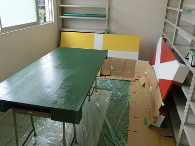 ここのところ、雨の日が多かったので、プールの更衣室を作業場として使っていました。