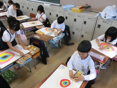 まだまだ、描き始めなのに、「校長先生〜! 見て! 見てっ!!」と、自分の作品のアピールがすごかったです。