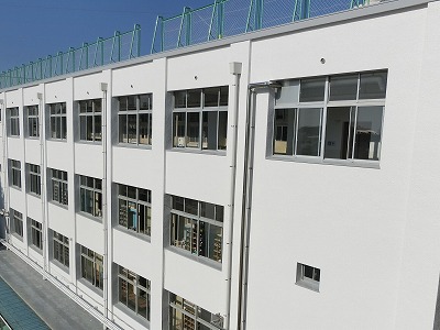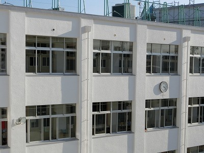 10月23日にも紹介はしたのですが、校舎全景であったため、塗装の色合いがあまりわかりにくかったようで、今日は、少しアップで紹介します。