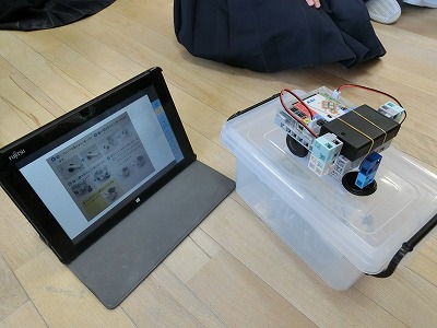 まだ電池も入っていないし、ロボットを自走させるための「プログラム」が入力されていないので、ロボットは動きません。子どもたちは、早く「プログラミング作業」をやりたがっていました。