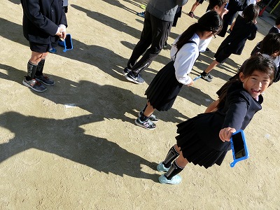 後半は、太陽の位置と、自分の「かげ」の位置を確認し、「かげ」のできる方向を知りました。