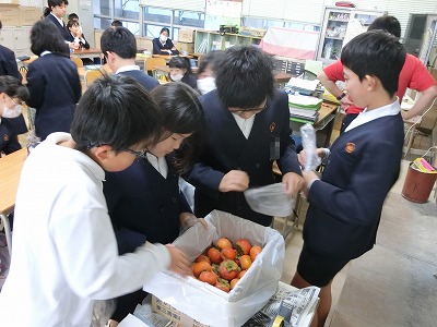 前回、3年生に配ったのですが、まだまだ樹上には柿だらけです。