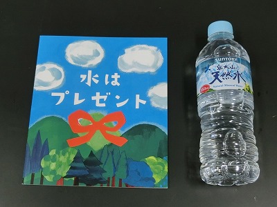 今日の学習をまとめた冊子と、鳥取県の奥大山で20〜30年をかけてきれいになった天然水をいただきました。お家でも、復習してくださいね。