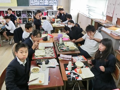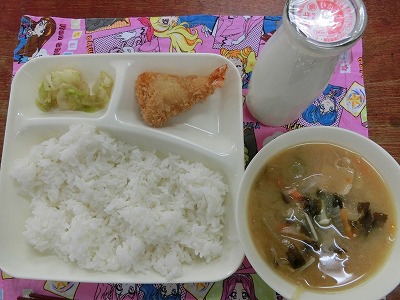 えびフライは、衣がサクッと揚がっていて、子どもたちはとても喜んで食べていました。しっぽまでパリパリと食べることができました。「もう一匹ほしい〜」と言っていました。
