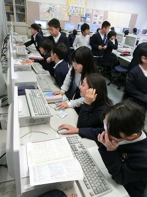 5年生が国語の学習でパソコン教室を使っていました。
