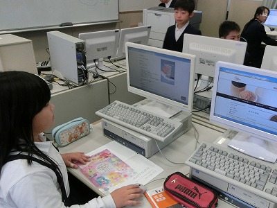 以前に紹介をしましたが、「和の文化を受けつぐ」という題材を学習していて、今日は、自分が調べるテーマについて、インターネットで調べ学習をしていました。