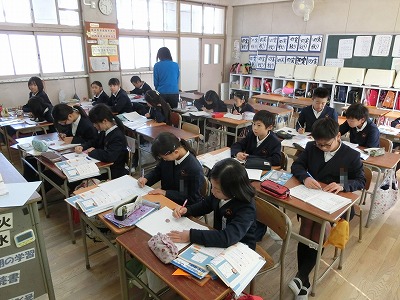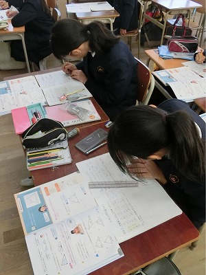 今日は、四角形の内角の和が何度になるのかを、三角形を使って考えていました。
