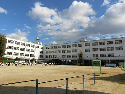夏休みに入り、工事の始まった「全校舎壁面塗装」ですが、昨日の間に、残っていた正面玄関の足場が取り外され、校舎の全容が現れました。