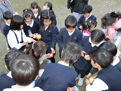 採ったみかんは、お友だちやお家の方と一緒に芝生広場で食べました。