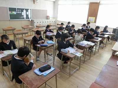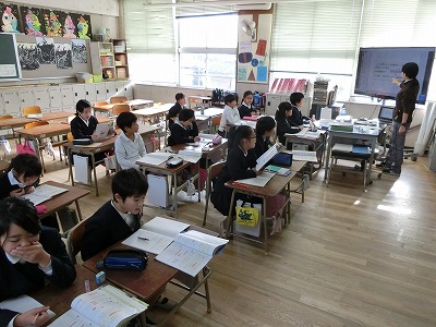 今日の学習は1mを5等分した長さを1/5m、その3こ分は3/5mという学習をしていました。子どもたちは集中して先生の説明を聞き、教科書の問題にとりかかっていました。
