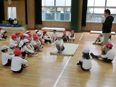 まずは、体操を習っている児童さんがいたので、みんなのお手本になってもらいました。