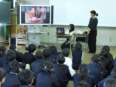 東淀川区の「いのちと性の健康教育事業」より、ゲストティーチャーとして、公益社団法人誕生学協会 誕生学アドバイザーの方を派遣していただき、6年生は5時間目に多目的室で、いのちの誕生、赤ちゃんの不思議、いのちの大切さなど、性教育を行いました。11月に4年生で実施したものの6年生バージョンです。