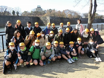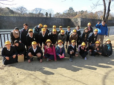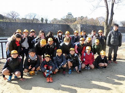 学校に戻る前に、大阪城をバックに記念写真です。