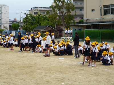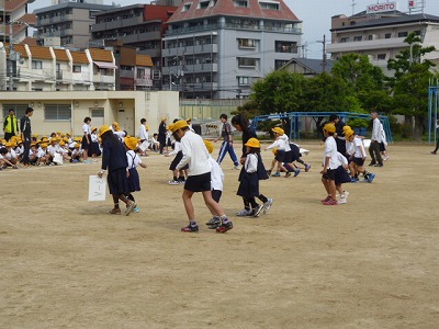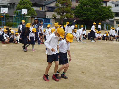 異学年でペアを組むので、高学年の児童と低学年の児童の身長差も、高学年のお兄さん・お姉さんがうまくリードをしてくれていました。