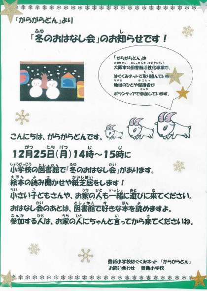 がらがらどんの「冬のおはなし会」のご案内 (12月21日)
