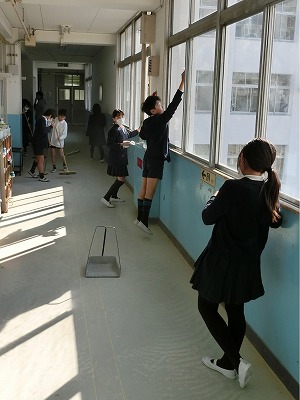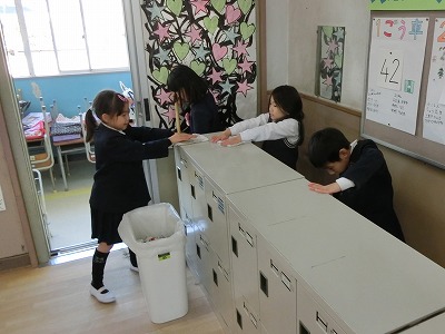 普段の掃除ではしないロッカーの後ろや黒板台(?)の下なども、みんなで協力してピッカピカにしてくれました。