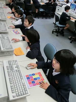 最近ではよくタブレットを使う場面が多いのですが、今日はデスクトップパソコンです。上手にマウスとキーボードを扱って作業を進めていました。