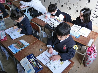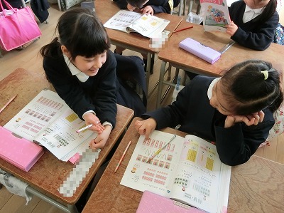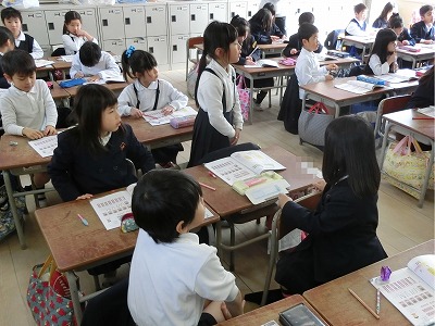 教科書には問題が3問ありましたが、子どもたちはよく理解しており、すぐに正解を教科書に書き込んでいました。