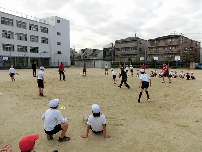 最初にした1組は、5人の児童が残ることができました。次の2組も、何と5人が残り、勝負はサドンデスとなり、10人がコート内に入り、選手と一騎打ちです。