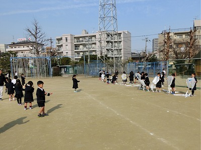 生活科の季節遊びの学習の一環で「凧づくり」「凧あげ」を行いました。