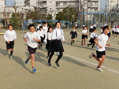 2時間目に学年合同の体育があるので、体操服に着替え、気合十分です。ですが、4周、5周と周回を重ねていくごとに、疲労が・・・・。 最後は、肩を上下に動かしながら息をしていました。ちょっと飛ばしすぎかな? でも、7周から10周走っていました。