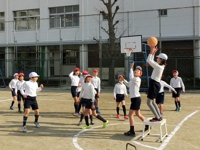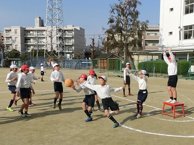 チームで作戦を相談し、ドリブルやパスでボールをつなげながら、ゴールに向かい、相手にじゃまされないようにシュートします。