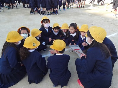 お正月に関係する言葉などを発表して、その字数の人が集まったら座っていきます。