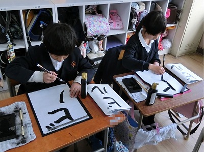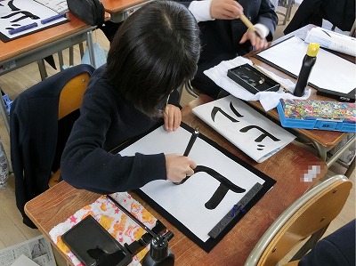 お手本を見て、ゆっくり、集中して、筆を運んでいきます。