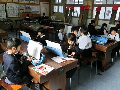 教室ではなく、音楽室での学習です。