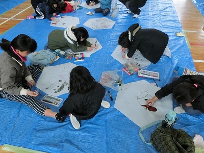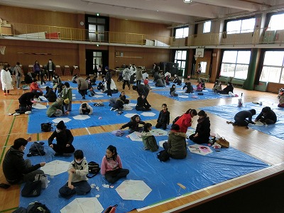 28日(日)、豊新地域の「凧づくり・凧あげ大会」が講堂・運動場で行われました。